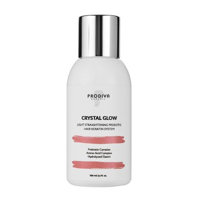 Prodiva CRYSTAL GLOW 100 мл – кератин нового поколения для тонких, сухих и осветлённых волос, которым требуется мягкое восстановление, питание и лёгкое уплотнение без утяжеления. Состав работает деликатно, без дыма и резких запахов, восстанавливая эластичность и гибкость за счёт комплекса аминокислот, гидролизованного эластина и пребиотиков. Масло бабассу дополнительно смягчает структуру и усиливает блеск. Не утяжеляет длину, сохраняет естественный прикорневой объём, комфортен в нанесении и сушке.