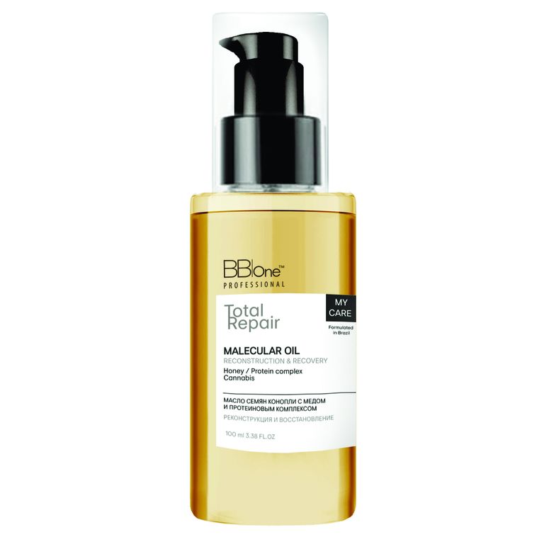 Масло семян конопли для волос Total Repair Malecular Oil Reconstruction & Recovery богато витаминами и жирными кислотами, необходимыми для восстановления сильно поврежденных волос. Вместе с медом и протеиновым комплексом масло увлажняет, питает и укрепляет сухие, ломкие и ослабленные волосы. Придает дополнительный блеск и облегчает процесс укладки.