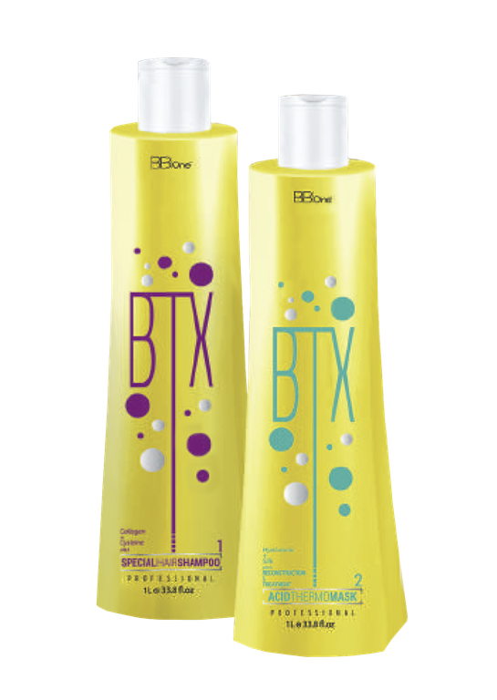 Все продукты линии BTX разработаны с использованием эксклюзивной технологии DDA, позволяющей эффективно восстанавливать волосы, благодаря более глубокому проникновению активных ингредиентов и их удержанию в внутренней структуре волос. Аминокислотный набор ботокс для волос BTX Acid Thermo Mask с синим пигментом – универсальный реконструктор, подходящий для дисциплинирования и восстановления всех типов волос. Подходит для особо чувствительных и склонных к аллергии мастеров и клиентов, так как работает на кислотах. Эффективно укрепляет волосы, устраняет пушистость, придает блеск, облегчает расчесывание. Имеет накопительный эффект. Действие: до 4 месяцев.