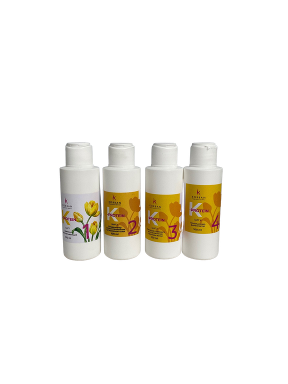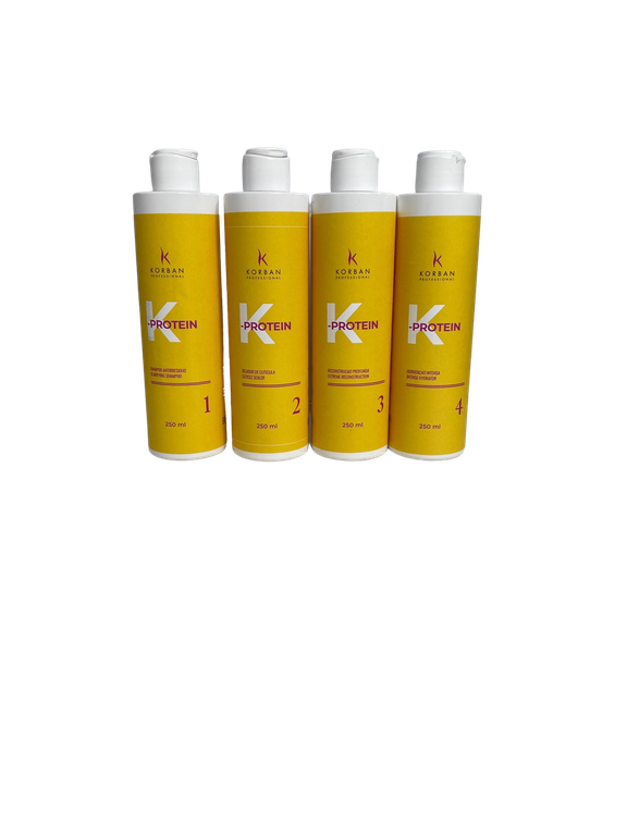Средства K-PROTEIN от Korban созданы для восстановления внутренней структуры волоса, заполнения всех пустот, возникших в следствие химического, физического и термического воздействий. Способствуют восстановлению кутикулы, восполняют гидро-липидный баланс волоса. Процедура восстановления состоит из 4 этапов: очищение шампунем, кондиционер-нейтрализатор, реконструктор и увлажнитель.
