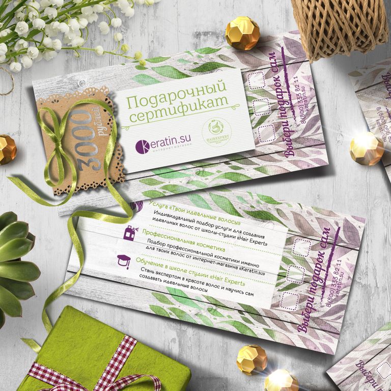 *В соответствии с номиналом подарочного сертификата, подбирается продукт или услуга, цена которых указана на сайте Keratin.su, процедура «Твои идеальные волосы» подбирается индивидуально под каждого клиента, стоимость зависит от длинны и густоты волос. Клиент в праве воспользоваться сертификатом в течение года при предварительной записи, запись происходит по телефону, указанному на сертификате, либо на сайте Keratin.su. При сертификате номиналом 10000 рублей, клиент в праве выбрать несколько услуг или продуктов не превышающих ценовую политику. Также клиент в праве использовать подарочный сертификат в качестве частичной оплаты и самостоятельно оплатить сумму не достающую для получения желаемой услуги или продукта.