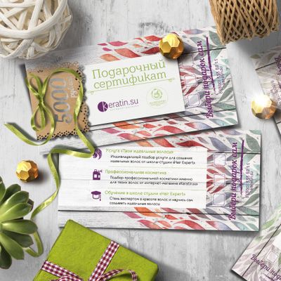 *В соответствии с номиналом подарочного сертификата, подбирается продукт или услуга, цена которых указана на сайте Keratin.su, процедура «Твои идеальные волосы» подбирается индивидуально под каждого клиента, стоимость зависит от длинны и густоты волос. Клиент в праве воспользоваться сертификатом в течение года при предварительной записи, запись происходит по телефону, указанному на сертификате, либо на сайте Keratin.su. При сертификате номиналом 10000 рублей, клиент в праве выбрать несколько услуг или продуктов не превышающих ценовую политику. Также клиент в праве использовать подарочный сертификат в качестве частичной оплаты и самостоятельно оплатить сумму не достающую для получения желаемой услуги или продукта.