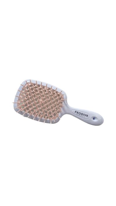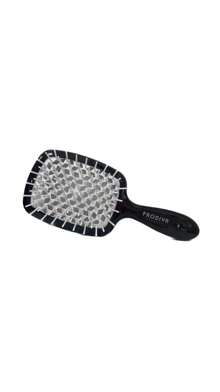Расческа-скелет от бренда Prodiva подходит для непослушных волос, имеет силиконовые зубчики закругленной формы, что способствует бережному расчесыванию волос и бережному уходу за кожей головы.