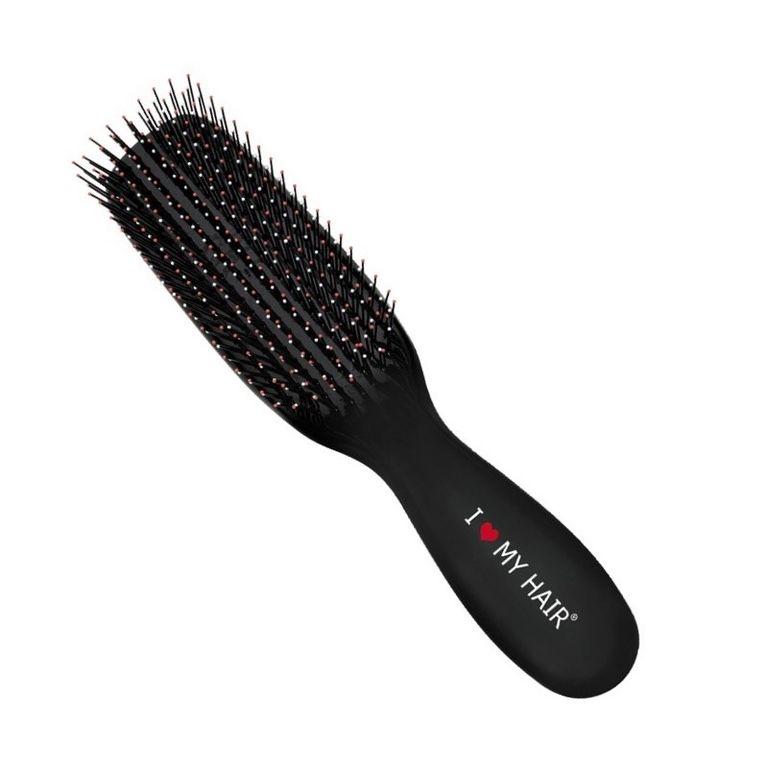 Ультрагибкие нейлоновые щетинки разной длины создают самый впечатляющий и мягкий эффект распутывания, обеспечивают комфортное прочесывание как мокрых, так и сухих волос. Длинные и короткие щетинки действуют разнонаправленно, дополняя друг друга. Длинные - помогают распутать волосы, короткие - создают дополнительный массажный эффект, не травмируя кожу. Щетка идеально подходит для использования во время мытья головы. Щетинки обогащены марокканским аргановым маслом и кератином. Щетина, созданная с применением биотехнологий, максимально бережно относится к структуре волос, на кончиках всех щетинок имеются защитные шарики, которые обеспечивают комфортное расчесывание, не травмирующее волосы.