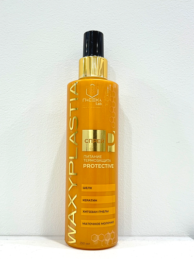 Спрей-протектор WAXYPLASTIA с шелком, пчелиным хитозаном, кератином и маточным молочком моментально укрепляет и питает волосы, восстанавливает тонус,насыщает жизненной энергией и придает объемность. Cпрей можно использовать самостоятельно как термозащиту, перед укладкой. Он сохранит прочность и целостность волосяного стержня и даст дополнительное питание, укрепив липидный слой.